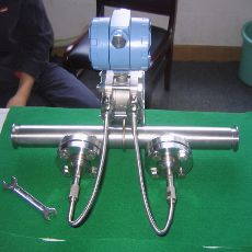 其原理是流體通過楔形流量計時,由于楔塊的節(jié)流作用,在其上、下游側產(chǎn)生了一個與流量值成平方關系的差壓,將此差壓從楔塊兩側取壓口引出,送至差壓變送器轉變?yōu)殡娦盘栞敵?,再?jīng)經(jīng)專用智能流量積算儀運算后,即可獲知流量值。