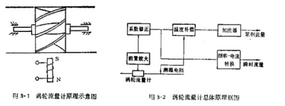 渦輪的轉(zhuǎn)速通過(guò)裝在機(jī)殼外的傳感線圈來(lái)檢測(cè)。當(dāng)渦輪葉片切割由殼體內(nèi)永久磁鋼產(chǎn)生的磁力線時(shí),就會(huì)引起傳感線圈中的磁通變化。傳感線圈將檢測(cè)到的磁通周期變化信號(hào)送入前置放大器,對(duì)信號(hào)進(jìn)行放大、整形,產(chǎn)生與流速成正比的脈沖信號(hào),送入單位換算與流量積算電路得到并顯示累積流量值;同時(shí)亦將脈沖信號(hào)送入頻率電流轉(zhuǎn)換電路,將脈沖信號(hào)轉(zhuǎn)換成模擬電流量,進(jìn)而指示瞬時(shí)流量值。