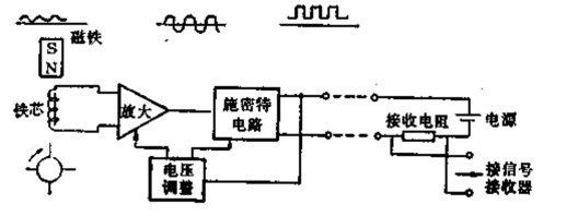 前置放大器由磁電感應(yīng)轉(zhuǎn)換器與放大整形電路兩部分組成,示意圖見(jiàn)圖3-4所示。