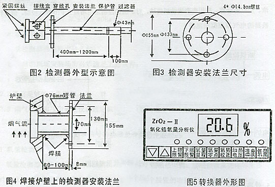 氧量檢測器的安裝參照圖3、圖4、進(jìn)行