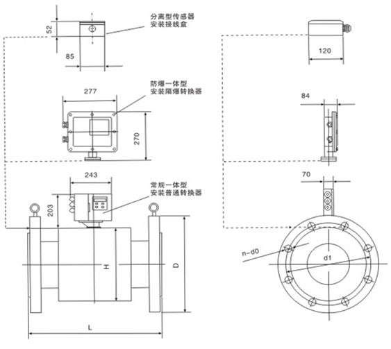 2、DN700~DN1600分體防爆型傳感器外形和常規(guī)儀表相同。
