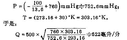 這里,因為P。用毫米汞柱作單位,所以毫米水柱必須化成毫米汞柱,計算時,只須將毫米水柱除以13.6即可。