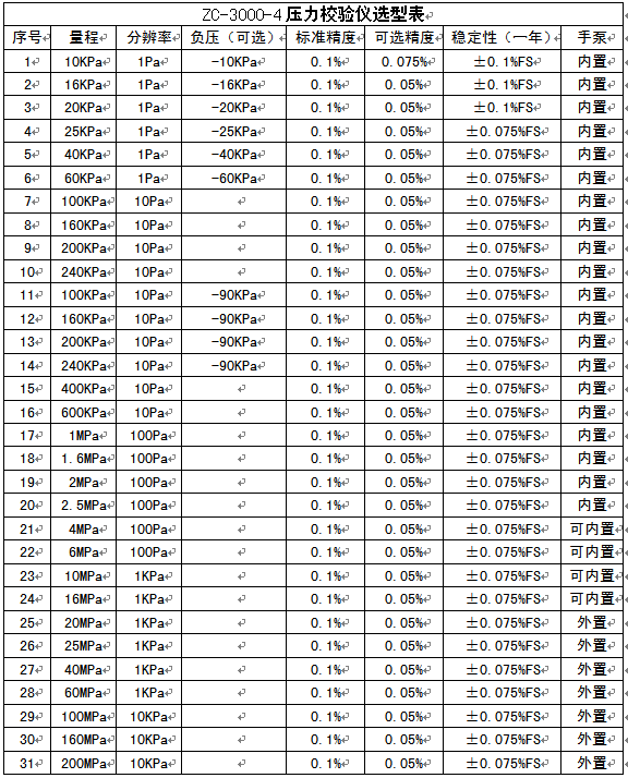 ZC-3000-4壓力校驗(yàn)儀的技術(shù)參數(shù):