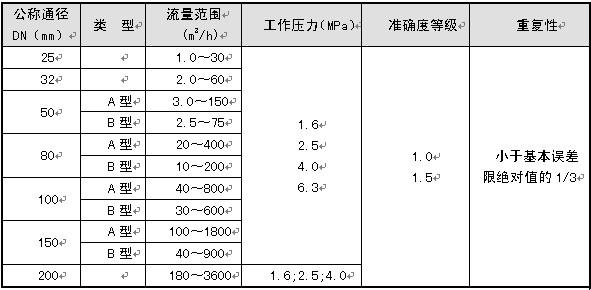 2.1流量計規(guī)格、基本參數(shù)和性能指標(biāo)(見表1)