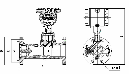 流量計的外形尺寸如圖3所示,圖中未注尺寸列于表1中,流量計采用法蘭連接方式,法蘭尺寸執(zhí)行GB/T9112~9113-2000標(biāo)準(zhǔn)。
