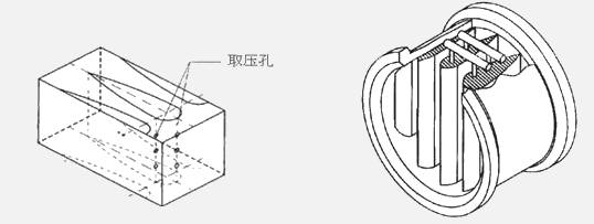 機(jī)翼測(cè)風(fēng)裝置是采用一種機(jī)翼形節(jié)流件的節(jié)流式流量傳感器。結(jié)構(gòu)原理圖如下: